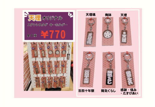 おつとめ衣・教服・ハッピなどの販売はもちろん、足袋や帯締めなど小物の品揃えも充実しております。その他、天理ふしん社オリジナルグッズなども販売。記念品のタオルや手ぬぐいのオーダーメイドもご相談承ります。