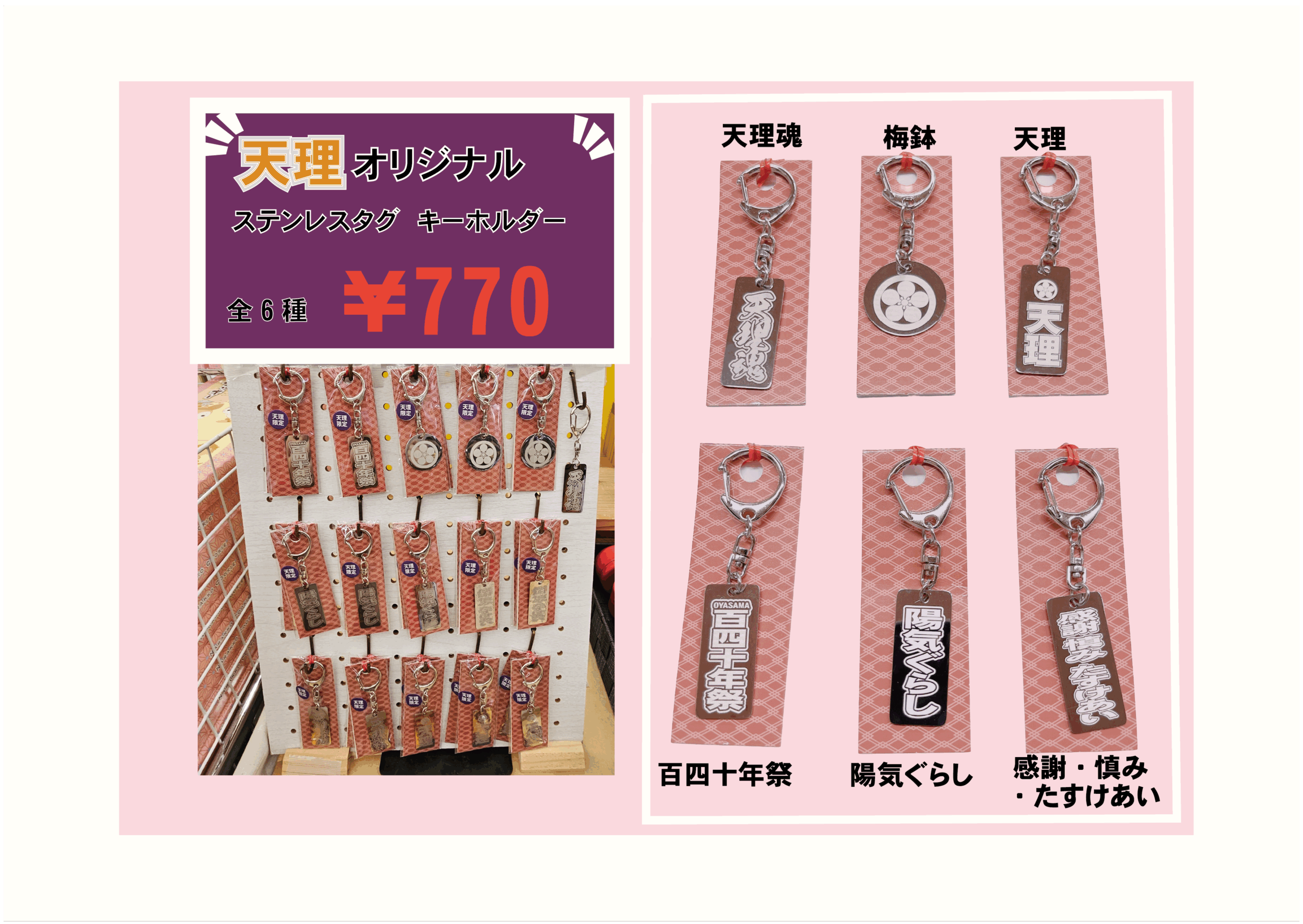 かばんや鍵につけるだけで、さりげなく天理らしさをアクセントに。